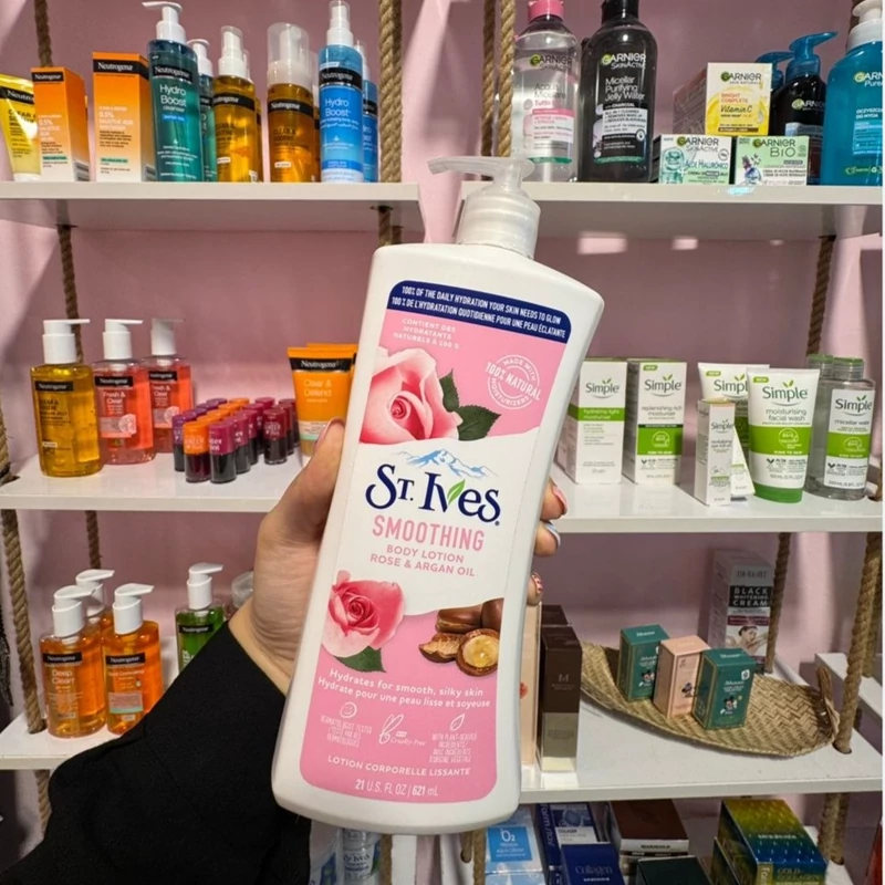 لوسیون بدن St. Ives Rose & Argan Oil یکی از محصولات مراقبت از پوست برند معروف St. Ives است که برای نرم و لطیف کردن پوست بدن طراحی شده است. این لوسیون با ترکیبی از عصاره طبیعی گل رز و روغن آرگان خالص، رطوبت مورد نیاز پوست را تأمین کرده و باعث درخشش و نرمی آن میشود.