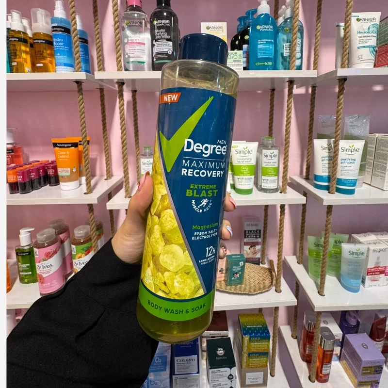 شامپو-بدن مردانه Degree Men Maximum Recovery Body Wash & Soak، فرمولی پیشرفته برای آقایانی است که پس از یک روز پرتحرّک یا جلسه تمرینی شدید، به یک پاکسازی و ریکاوری واقعی نیاز دارند. این محصول با ترکیبی از نمک اپسوم (Epsom Salt)، الکترولیتها و عطر «Cool Rush» طراحی شده تا علاوه بر تمیزی پوست، احساس تازگی، آرامش عضلانی و طراوت ذهنی نیز ایجاد کند.