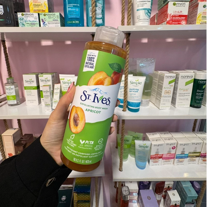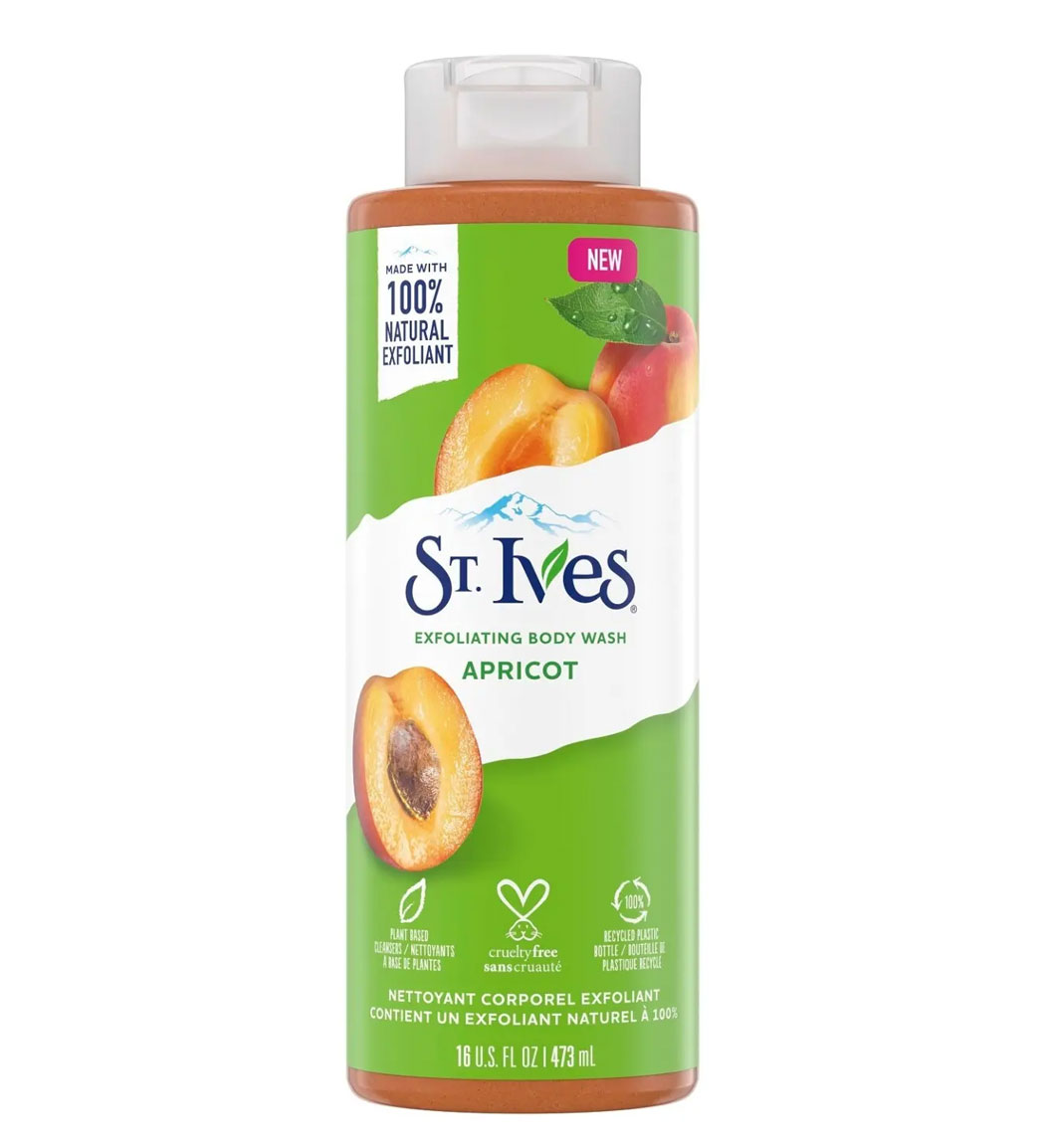 شامپو بدن لایهبردار St. Ives Apricot ترکیبی از دانههای طبیعی زردآلو و عصاره گیاهان است که بهطور ملایم پوست بدن را لایهبرداری کرده و سلولهای مرده را از بین میبرد.